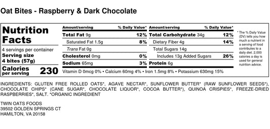 Raspberry & Dark Chocolate - Oat Bites (Sunbutter)