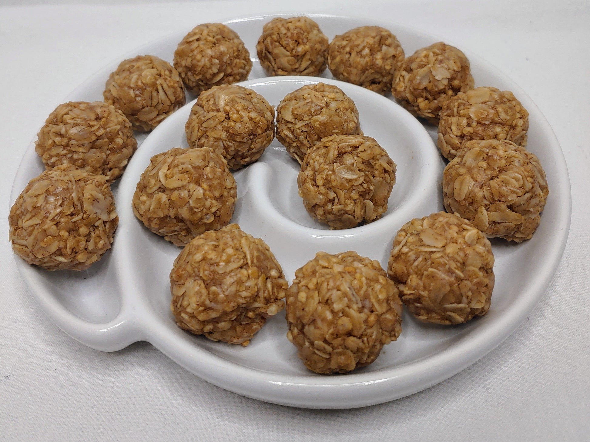 Gluten-free oats, and crispy puffed quinoa wrapped in smooth peanut butter and blue agave finished with hint of Himalayan Pink Salt.